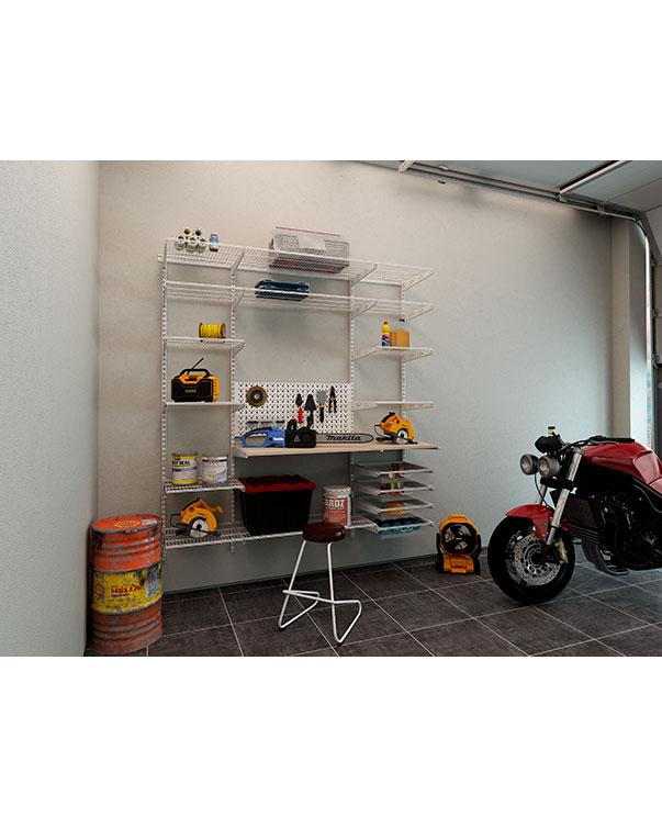 Модульная система хранения ПРАКТИК HOME с перфорированной панелью и сетчатыми полками поможет навести порядок раз и навсегда. Универсальная комбинация отверстий на панели подходит для установки различных типов подвесов и аксессуаров для хранения инструментов. Прочная стальная конструкция не боится нагрузок до 50 кг, обеспечивая долговечность даже при интенсивном использовании в хозяйственных помещениях. Сетчатые полки в сборке позволяют наглядно разместить банки с краской, контейнеры с крепежом или электроинструмент. Благодаря открытому хранению вы всегда будете видеть, где лежит нужная отвертка или сверло. Система легко монтируется на стену, экономя полезную площадь пола в небольших гаражах или кладовых.