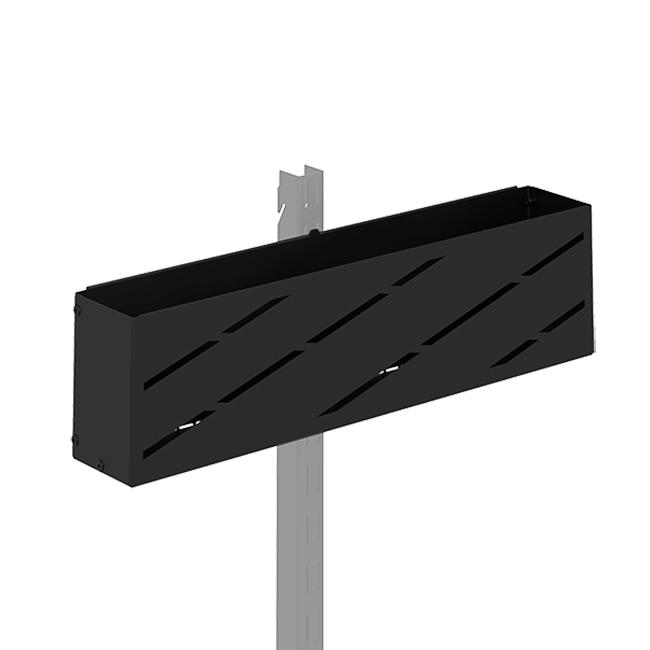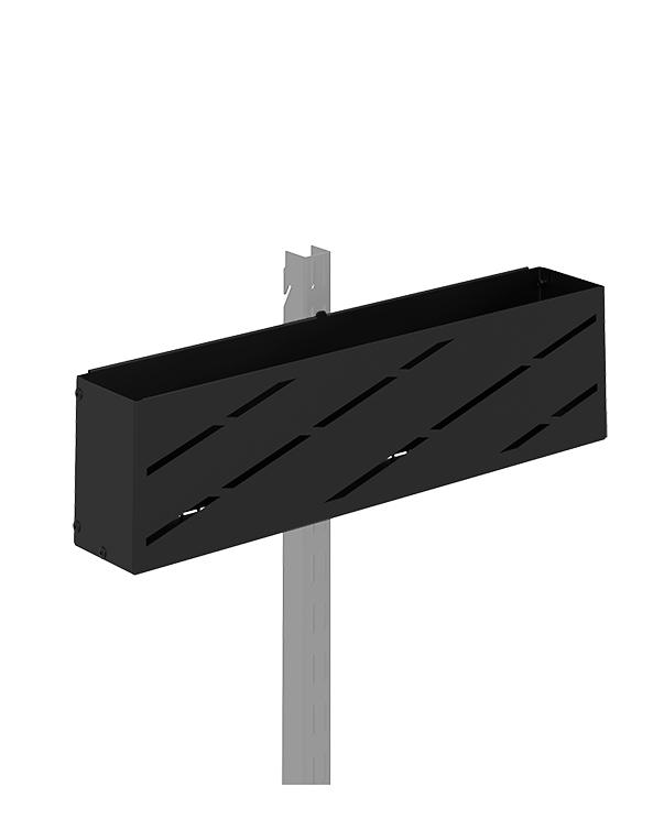 Корзина легко крепится на вертикальную стойку с помощью специального переходника, либо устанавливается на внешнюю боковую часть кронштейна.