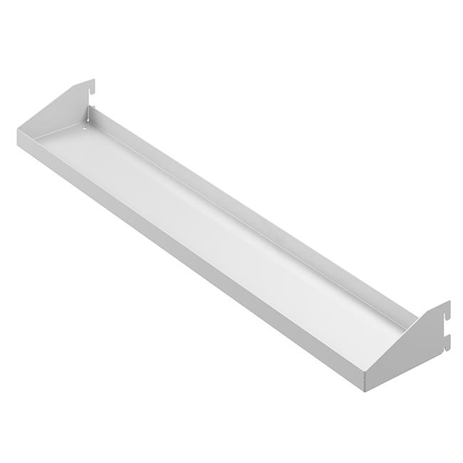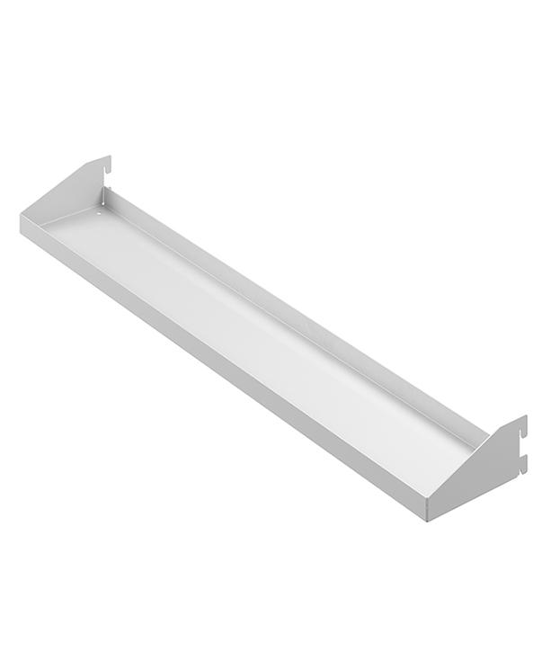 Секционная полка устанавливается между стоек, используется в прихожих, гардеробных комнатах, мастерских, гаражах, ванных комнатах. Удобна для хранения мелких предметов и аксессуаров.Характеристики