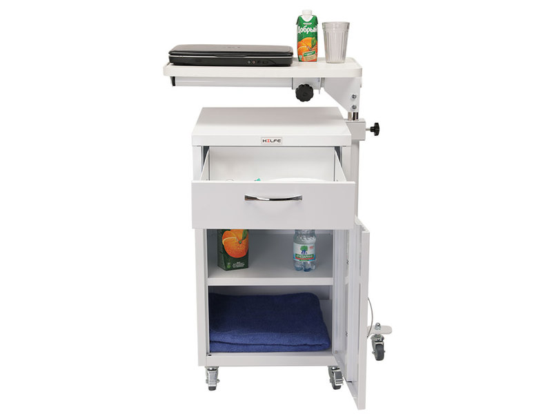 Предназначена для хранения личных вещей пациентов, медикаментов в больничной палате или домашних условиях. Тумба комплектуется прикроватным поворотным столиком, который помогает больному с постельным режимом принимать пищу, читать, разместить ноутбук для работы.