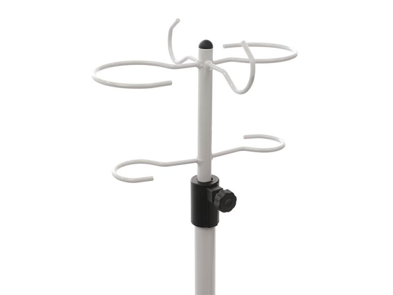 - Штатив представляет сборно-разборную конструкцию, состоящую из стойки, с флаконодержателями/ крючками,основания и колёс